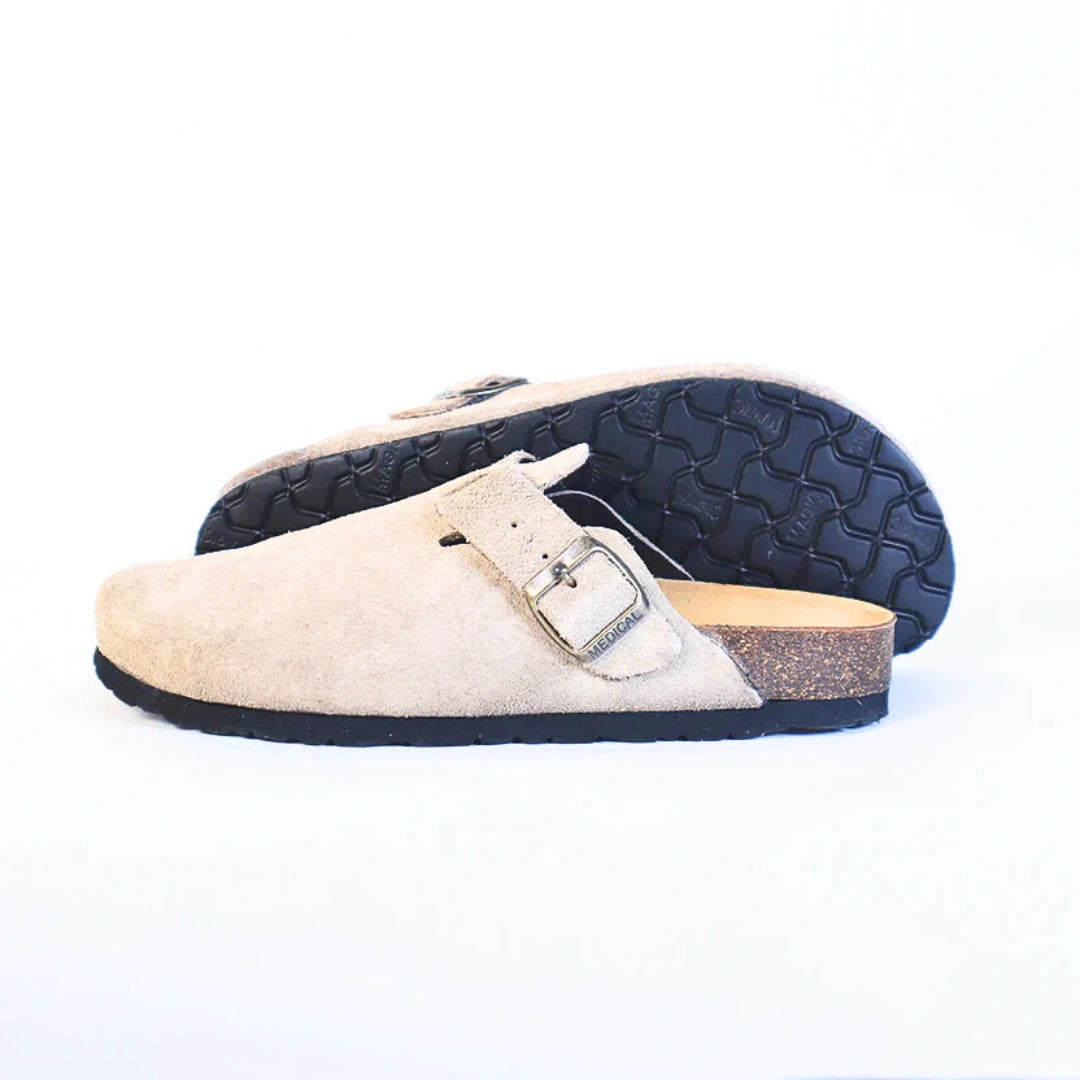 Sabot médical en daim beige, conçu pour offrir confort et soutien optimal tout au long de la journée. La matière daim premium assure une douceur naturelle et une respirabilité supérieure, idéale pour les environnements professionnels de santé. La semelle ergonomique épouse parfaitement la morphologie du pied, réduisant la fatigue et les tensions. Fermeture sécurisée et design intemporel pour une allure professionnelle. Parfait pour les professionnels exigeant qualité et bien-être.